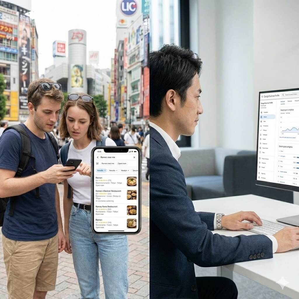 本サービスでは、こうした外国人観光客特有の検索行動を前提に、Googleビジネスプロフィールのカテゴリ設定、説明文構成、表示情報の優先順位を設計します。